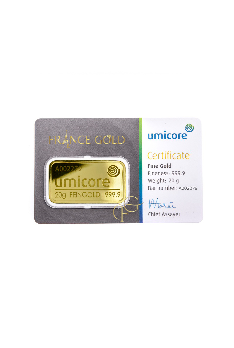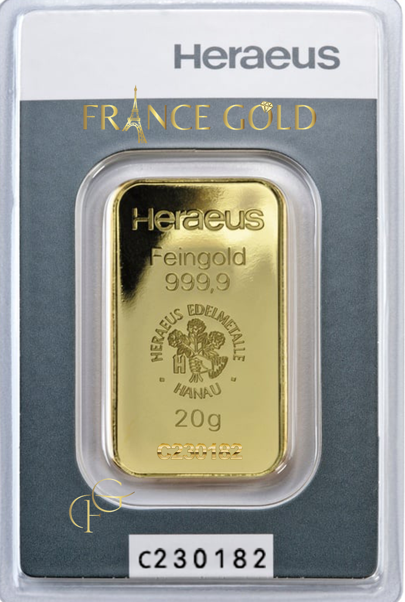 L’ensemble des lingots d’or de 20 g de FRANCE GOLD sont sous scellés, numérotés et livrés dans leur emballage d’origine scellé, garantissant ainsi leur authenticité et leur qualité en or. L’achat d’un lingot d’or 20 grammes chez France Gold vous offre un produit d’investissement d’une valeur boursière préservée.