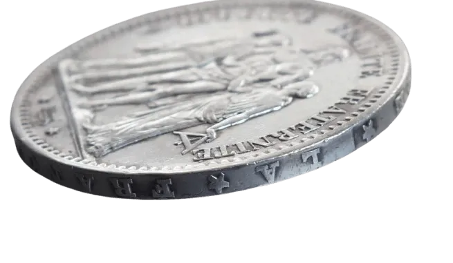 Création d’une Nouvelle Monnaie (1874) : La pièce en Argent 50 Francs Hercule est très prisée pour l’investissement en raison de sa valeur historique et de ses spécifications. Elle pèse 30 grammes, avec une pureté de 900‰. La pièce en Argent 50 Francs Hercule attire les investisseurs et collectionneurs grâce à sa rareté.